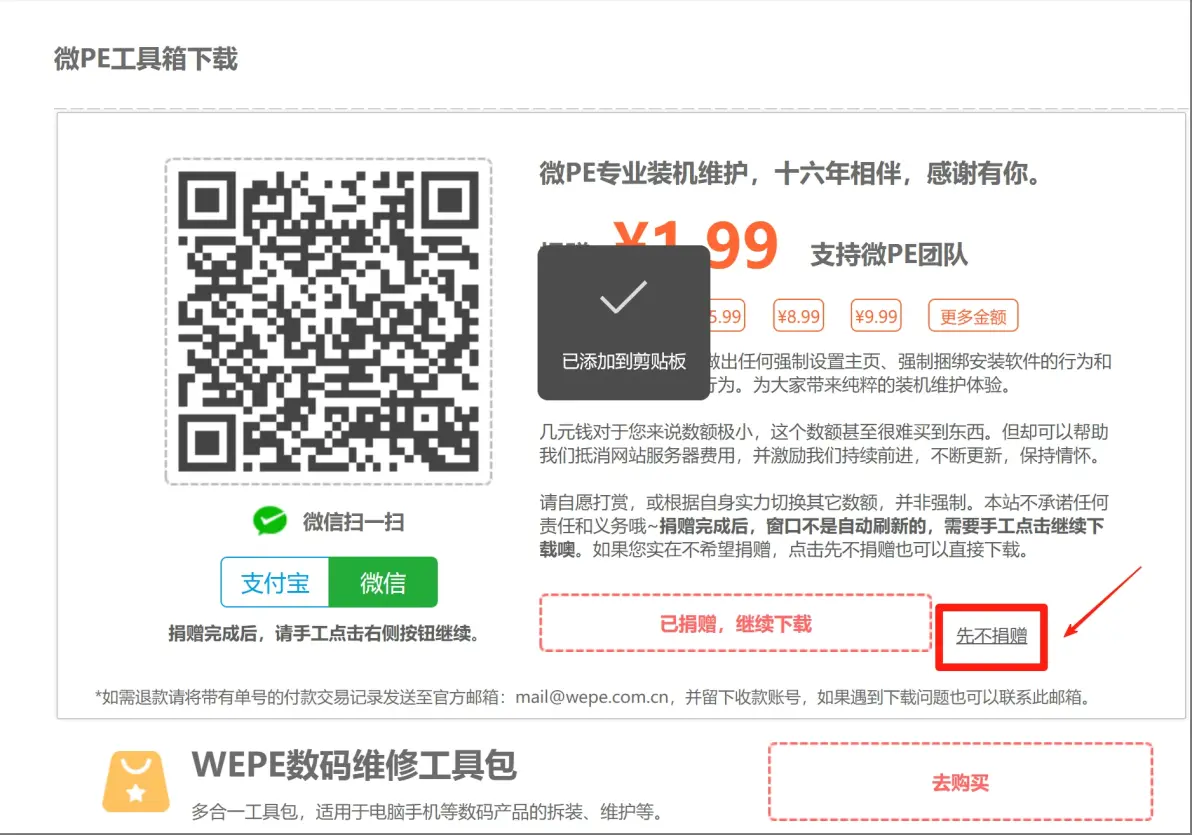 如果是喜欢白嫖的可以直接点击先不捐赠就能看到下载链接了